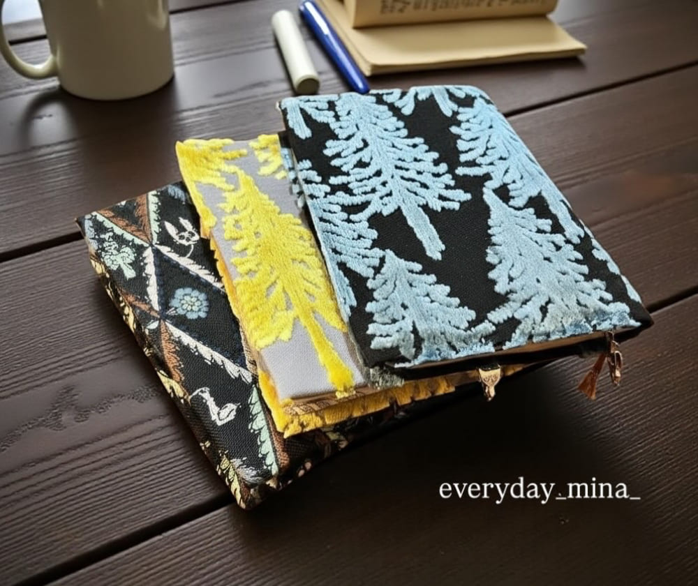ミナ ペルホネンのショップを訪れるたび、ふと目に留まる布製のブックカバー。