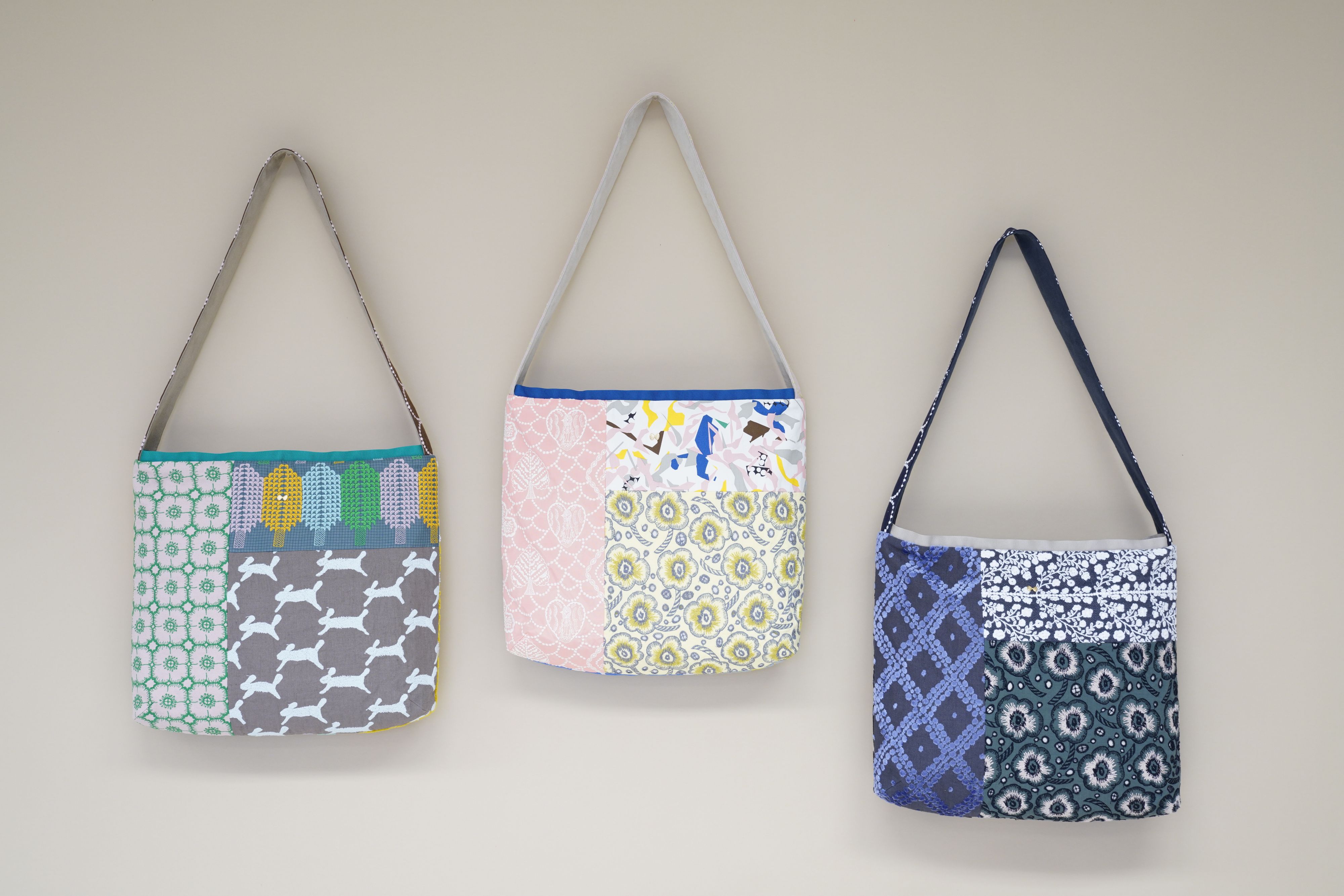 テキスタイルのパッチワークで仕立てられたこのバッグは、たっぷりとしたサイズ感で、肩掛けも斜め掛けもできる使い勝手の良さが魅力です。 私なら、満開のツツジを見に行くときに一緒に連れていきたいな……なんて、楽しい妄想が膨らんでしまいます。