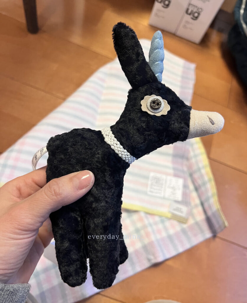 手元に置いておくのが愛らしいロバ型のぬいぐるみ。背丈は18センチほどで両手に程よく収まるサイズとなっています。