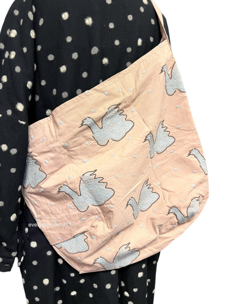 今回ご紹介するのは、その「swan」を贅沢に使ったショルダーバッグの大きいサイズ。 「いつかお迎えしたい」と願っていたこのテキスタイルが、自分の暮らしに仲間入りした時の喜びを綴ってみたいと思います。