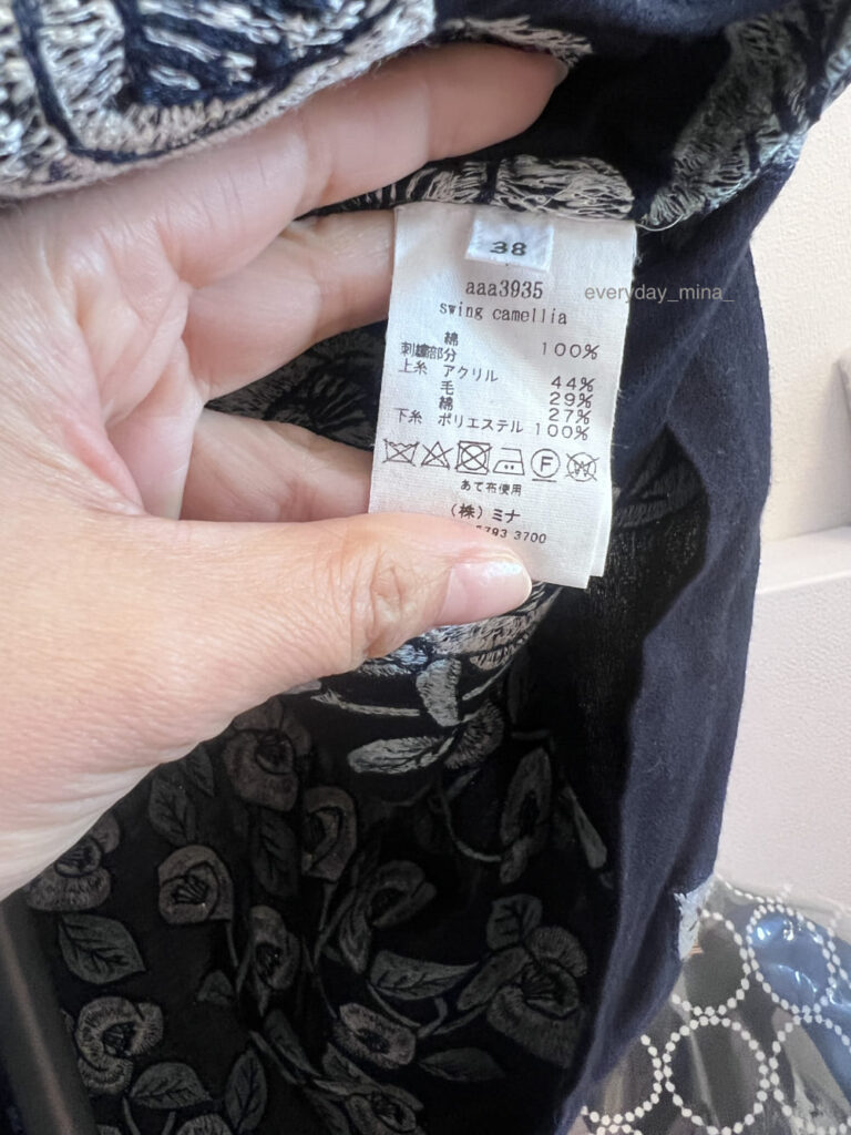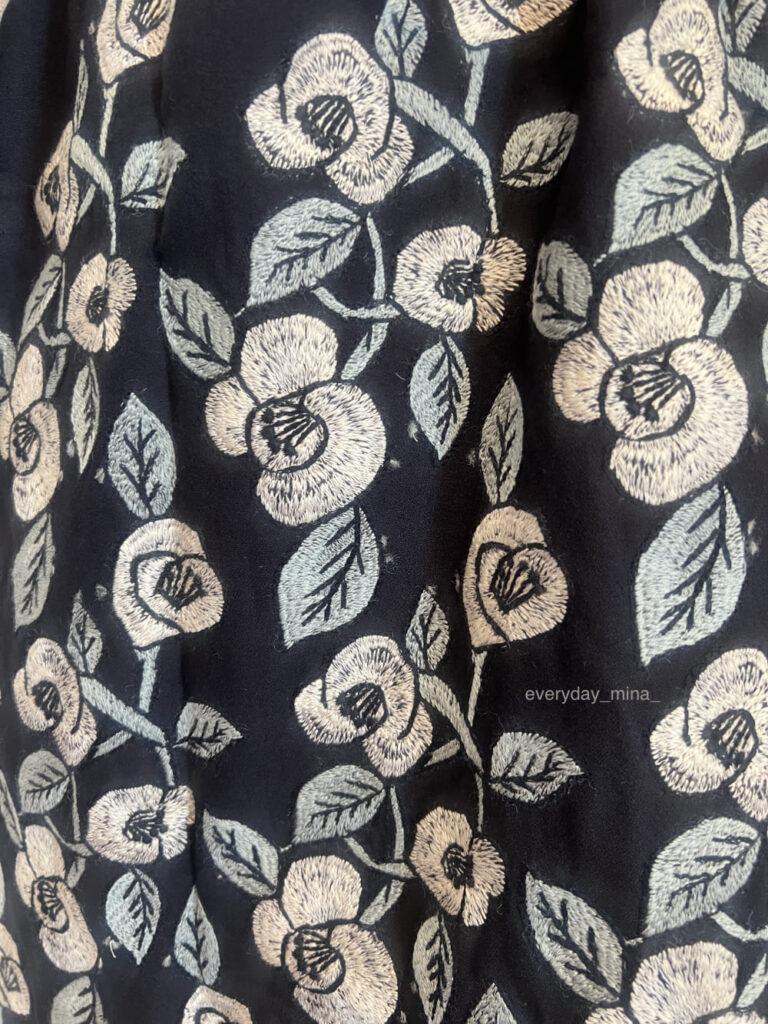 2022-23 a/wに展開のあったテキスタイルで、2022年の6月頃に予約会に行った際にはこちらだけに目が入ってしまい、「swing camellia」のワンピースドレスだけを予約して帰ってきたという思い出があります。