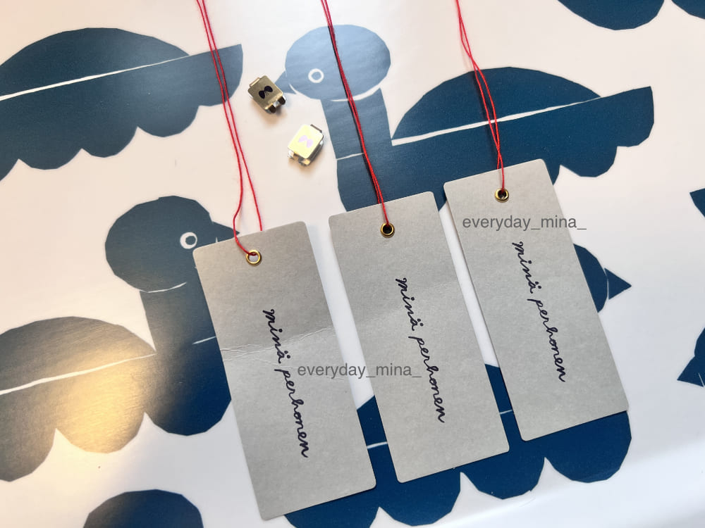 ・タグへの記載→グレーの紙タグに白いシールが貼られています。すべての印字内容はこの白いシール部分にあり、下部には税込、税抜価格も記載があります。これもシール内に印字があります。(ジブリコラボは例外となります。)