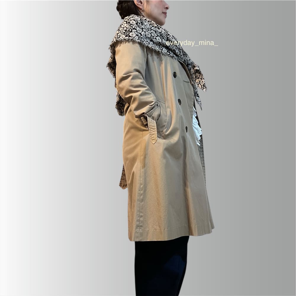 ですが、実際に巻いてみると、この大きさが絶妙なんです。 首元に収まりがよく、大げさになりすぎない。デイリーに「ちょうどいい」ボリューム感。